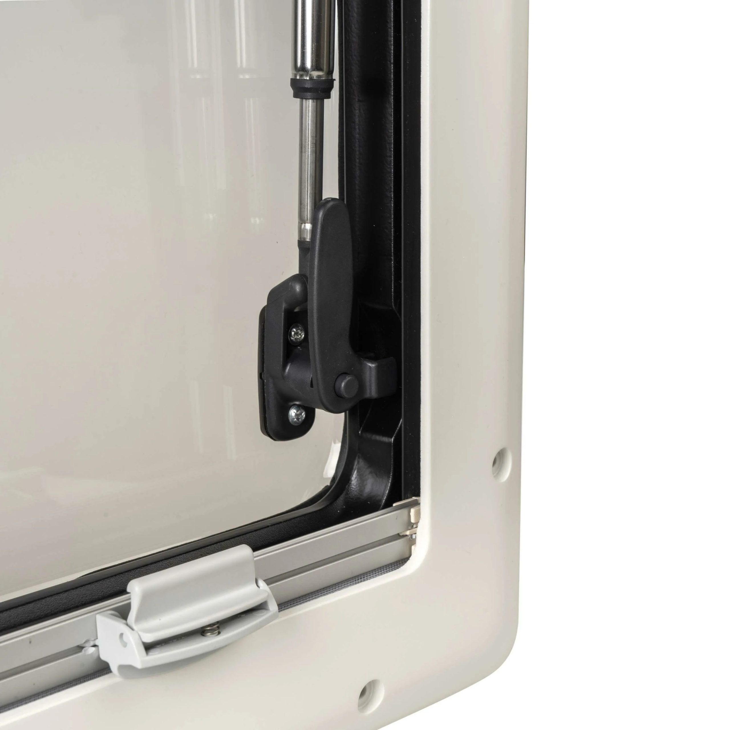 Dit raam is geschikt om in te bouwen in campers en caravans met een wanddikte tussen 26 en 41 mm. Het raam is snel en eenvoudig te monteren en gaat lang mee. Het buiten- en binnenframe zijn aan elkaar geschroefd waardoor deze aan de voertuigwand zijn geklemd. Hierdoor vormt het frame een langdurige en houdbare dichting. Het raam is gemaakt van acrylglas.